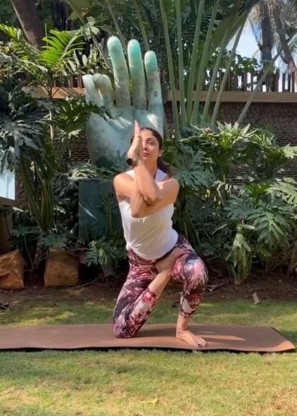 अभिनेत्री ने आखिरी में अपने फैंस से सवाल पूछते हुए लिखा, “आप कितनी देर तक इस आसन में संतुलन बनाए रख सकते हैं?”