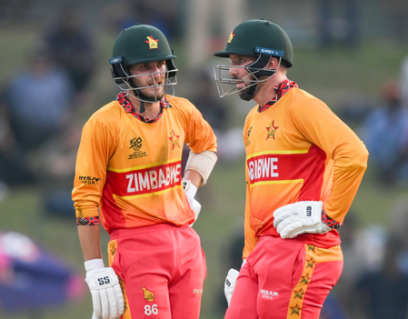 इसके जवाब में जिम्बाब्वे ने 13.3 ओवरों में जीत दर्ज कर ली। दिवानाशे मारुमानी और ब्रायन बेनेट ने पहले विकेट के लिए 3.1 ओवरों में 30 रन जुटाए। मारुमानी 11 गेंदों में 5 चौकों के साथ 21 रन बनाकर आउट हुए, जिसके बाद डायोन मायर्स (0) बल्लेबाजी के लिए उतरे, लेकिन अपनी दूसरी गेंद पर ही विकेट गंवा बैठे।