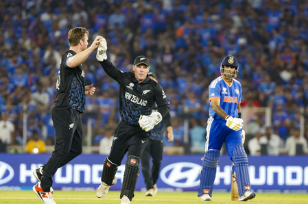 कीवी कप्तान मिचेल सेंटनर ने गेंद जेम्स नीशम को सौंपी, जिन्होंने ओवर की पहली ही बॉल पर प्रचंड फॉर्म में नजर आ रहे संजू सैमसन (89) को कैच आउट कराया। इसके बाद पांचवीं गेंद पर ईशान किशन (54) भी कैच आउट होकर वापस लौटे। इसके बाद कप्तान सूर्यकुमार यादव मैदान पर उतरे, जिनसे फैंस को खिताबी मैच में शानदार बल्लेबाजी की उम्मीद थी, लेकिन सूर्यकुमार यादव (0) अपनी पहली ही गेंद पर रचिन रवींद्र के हाथों कैच आउट हो गए।