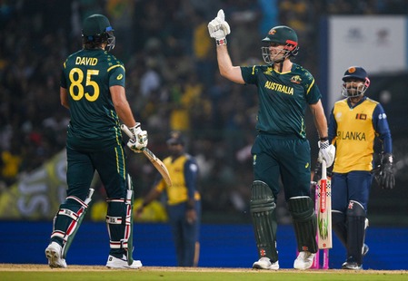 इस टीम को मिचेल मार्श और ट्रेविस हेड की सलामी जोड़ी ने शानदार शुरुआत दिलाई। दोनों खिलाड़ियों ने 8.3 ओवरों में 104 रन की साझेदारी की। ट्रेविस हेड 29 गेंदों में 3 छक्कों और 7 चौकों के साथ 56 रन बनाकर आउट हुए, जिसके बाद टीम के तेजी से विकेट गिरे। आलम ये रहा कि ऑस्ट्रेलिया ने 130 के स्कोर तक 4 विकेट खो दिए थे। इस बीच कप्तान मार्श ने 27 गेंदों में 2 छक्कों और 8 चौकों के साथ 54 रन की पारी खेली।
