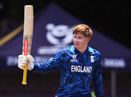 बुलावायो, 3 फरवरी (आईएएनएस)। इंग्लैंड ने क्वींस स्पोर्ट्स क्लब में मंगलवार को खेले गए अंडर 19 वर्ल्ड कप 2026 के सेमीफाइनल-1 में ऑस्ट्रेलिया के खिलाफ 27 रन से जीत दर्ज की। इसी के साथ इंग्लिश टीम ने 6 फरवरी को खेले जाने वाले फाइनल मुकाबले में जगह बना ली है, जहां उसका सामना भारत-अफगानिस्तान के बीच सेमीफाइनल-2 मुकाबले की विजेता टीम से होगा।