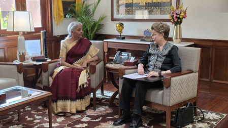 नई दिल्ली, 10 मार्च (आईएएनएस)। नई दिल्ली में केंद्रीय वित्त और कॉर्पोरेट मामलों की मंत्री निर्मला सीतारमण ने न्यू डेवलपमेंट बैंक (एनबीडी) की अध्यक्ष दिलमा रूसेफ से मुलाकात की। इस बैठक में विकसित भारत के विजन, भारत-एनबीडी साझेदारी को मजबूत करने, निजी निवेश बढ़ाने और बुनियादी ढांचे और शहरी विकास में सहयोग जैसे महत्वपूर्ण मुद्दों पर चर्चा हुई।