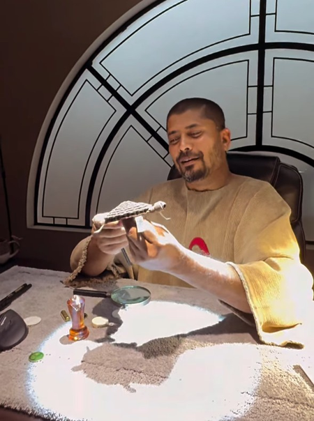 वह एक परफेक्शनिस्ट हैं। मेथड एक्टर की तरह अपनी पोर्ट्रेट को फुल जस्टिस देने के लिए फुल कैरेक्टर में चले जाते हैं। वे कहते हैं, “मैं उस कैरेक्टर में जब जाता हूं तो जिंदगी जीता हूं। उस व्यक्तित्व को जीकर आता हूं। मुझे कठिन परिश्रम से ज्यादा उस शख्सियत को जीने में मजा आता है। मैं वैसे ही लिबास बनवाता हूं और उसी तरह का व्यवहार करता हूं, उसी तरह के शरीर के हाव-भाव होते हैं और वैसे ही घर पर काम करता हूं। मैंने अलग-अलग सेगमेंट में इतना काम सीख लिया कि दुनिया के किसी भी मटेरियल से आर्ट बना सकता हूं।”