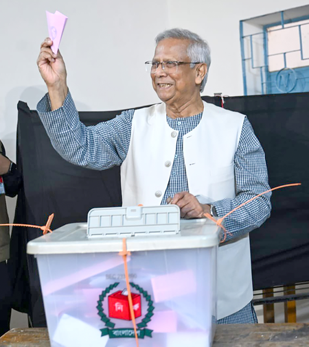 ढाका में यूनुस ने डाला वोट, चुनाव को ‘नए बांग्लादेश का जन्मदिन’ बताया