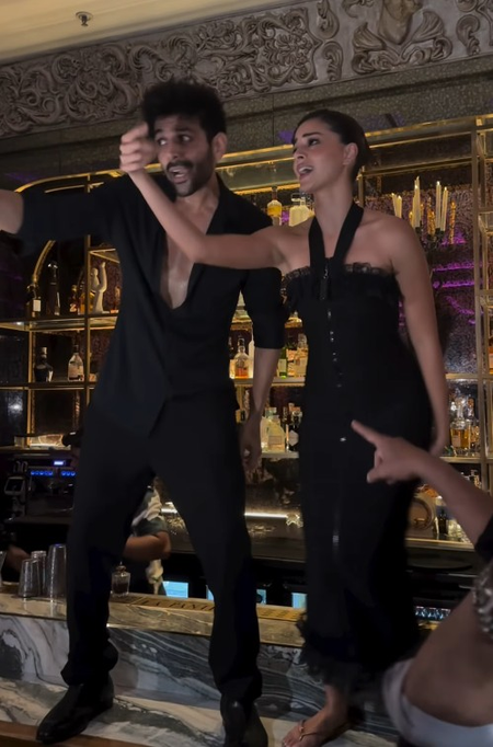 इस इंस्टाग्राम वीडियो में कार्तिक और अनन्या दोनों किसी हाई-एंड क्लब या बार के काउंटर पर चढ़कर मस्ती में झूमते नजर आ रहे हैं। दोनों ने ब्लैक आउटफिट पहन रखे हैं, जिससे उनका लुक और भी स्टाइलिश लग रहा है। कार्तिक ने जहां शर्ट और ट्राउजर पहना है, वहीं अनन्या एक स्लीक ब्लैक ड्रेस में बेहद ग्लैमरस लग रही हैं। ‘जुम्मा चुम्मा दे दे’ गाने पर दोनों का एक्सप्रेशन, मूवमेंट और एनर्जी माहौल को मस्ती भरा बना रहा है। इस वीडियो के साथ कार्तिक ने एक खास कैप्शन भी लिखा है, “तू मेरी, मैं तेरा… मैं तेरा, तू मेरी…”