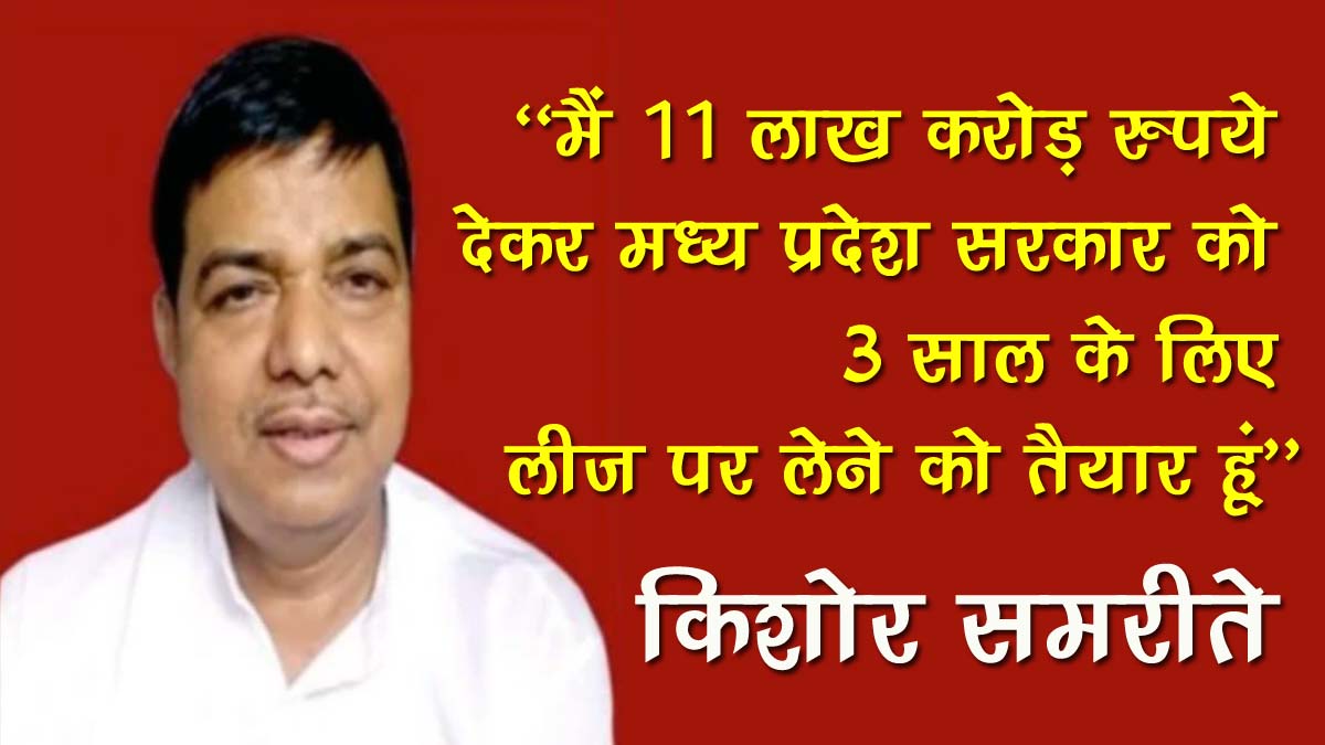 भोपाल / 29 अक्टूबर/ मध्य प्रदेश की राजनीति में सनसनी मच गई है। संयुक्त क्रांति पार्टी के राष्ट्रिय अध्यक्ष और बालाघट जिले के लांजी विधानसभा के पूर्व विधायक किशोर समरीते ने प्रधानमंत्री नरेंद्र मोदी को एक ऐसा पत्र लिखा है, जिसने पूरे राज्य में हलचल मचा दी है। समरीते ने पत्र में कहा है कि वे पूरी मध्य प्रदेश सरकार को 11 लाख करोड़ रुपये में 3 साल के लिए लीज पर लेने को तैयार हैं। यह प्रस्ताव, एक तरह से प्रदेश में व्याप्त भ्रष्टाचार के खिलाफ विरोध की घोषणा माना जा रहा है। उन्होंने तंज कसते हुए कहा – “जब खनन माफिया पूरे प्रदेश को लूट सकता है, तो क्यों न मैं पूरी सरकार को ही लीज पर लेकर पारदर्शी तरीके से काम करूं?”