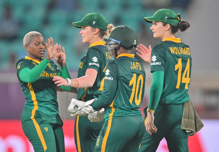 साउथ अफ्रीका की प्लेइंग इलेवन: लौरा वोल्वार्ड्ट (कप्तान), ताजमिन ब्रित्स, सुने लुस, एनेरी डर्कसेन, मारिजैन कप्प, कराबो मेसो (विकेटीकपर), क्लो ट्रायॉन, नादिन डी क्लार्क, नोंदुमिसो शांगसे, मसबत क्लास और नॉनकुलुलेको म्लाबा।