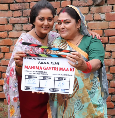 उन्होंने तस्वीर पोस्ट कर कैप्शन में लिखा, “नीलम प्रेजेंट्स फिल्म ‘महिमा गायत्री मां की।’