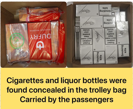 इसी तरह चौथे मामले में प्रोफाइलिंग के आधार पर उड़ान संख्या आईएक्स-252 से शारजाह से मुंबई पहुंचे तीन यात्रियों को रोका गया। तलाशी में 40 एप्पल आईफोन 17 प्रो मैक्स, 30 लैपटॉप, 12 शराब की बोतलें और सिगरेट के पैकेट बरामद हुए। कुल मूल्य 56.55 लाख रुपए रहा। सामान ट्रॉली बैग में छिपाया गया था। यात्रियों को कस्टम्स एक्ट के तहत गिरफ्तार किया गया।