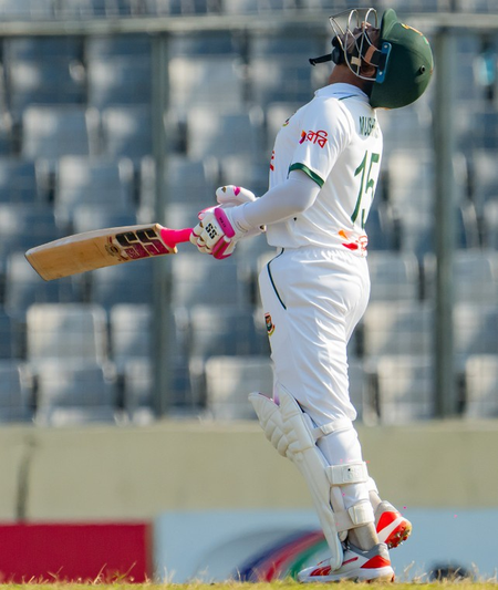 पहले दिन मोमिनुल हक 63, शादमान इस्लाम 35, और महमदुल हसन जॉय 34 रन बनाकर आउट हुए थे।