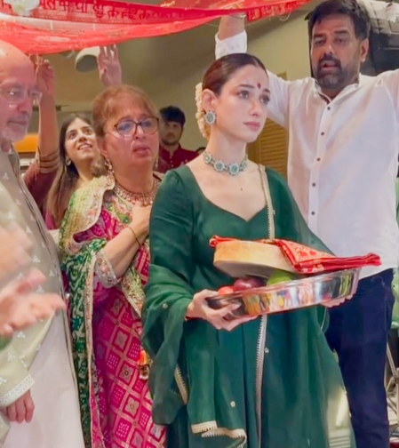 तमन्ना भाटिया ने अपने इंस्टाग्राम अकाउंट पर एक वीडियो शेयर किया है। इसमें वह माता रानी की भक्ति में डूबी दिखाई दे रही हैं। वह माता की चौकी के सामने मेहंदी लगाती, नाचती और प्रार्थना करती दिखाई दे रही हैं।