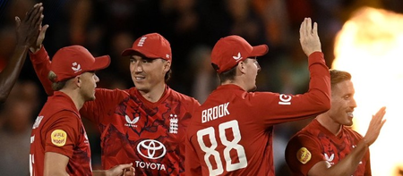 पहले टी20 मैच के लिए इंग्लैंड की प्लेइंग इलेवन: फिल साल्ट, जोस बटलर, जैकब बेथेल, हैरी ब्रूक (कप्तान), टॉम बैंटन, सैम कुरेन, जॉर्डन कॉक्स, ब्रायडन कार्स, लियाम डॉसन, आदिल राशिद, ल्यूक वुड।