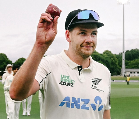 जैकब डफी ने 17.4 ओवर में 34 रन देकर 5 विकेट लिए। मैट हेनरी ने 3 और जेकारी फॉल्क्स ने 2 विकेट लिए।