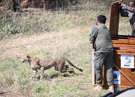 गैबोरोन, 13 नवंबर (आईएएनएस)। बोत्सवाना ने ‘प्रोजेक्ट चीता’ के अगले चरण के तहत औपचारिक रूप से भारत को आठ चीते सौंपे हैं। विदेश मंत्रालय ने बताया कि राष्ट्रपति द्रौपदी मुर्मू ने राष्ट्रपति ड्यूमा गिदोन बोको के साथ गैबोरोन स्थित मोकोलोडी नेचर रिजर्व का दौरा किया। राष्ट्रपति ड्यूमा गिदोन बोको ने ‘प्रोजेक्ट चीता’ के अगले चरण के तहत औपचारिक रूप से भारत को आठ चीते सौंपे। इस दौरान वे बोत्सवाना के घांजी क्षेत्र से पकड़े गए चीतों को क्वारंटाइन सेंटर में छोड़े जाने की साक्षी बनीं।