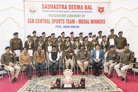सशस्त्र सीमा बल, मुख्यालय, नई दिल्ली में आयोजित एक भव्य सम्मान समारोह में महानिदेशक संजय सिंघल ने राष्ट्रीय प्रतियोगिताओं में उत्कृष्ट प्रदर्शन करने वाले खिलाड़ियों एवं उनके प्रशिक्षकों को सम्मानित किया।