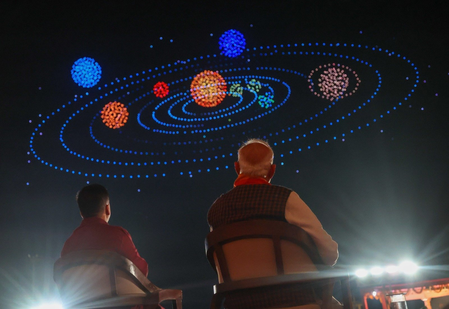 प्रधानमंत्री मोदी ने सोशल मीडिया प्लेटफॉर्म एक्स पर ड्रोन की तस्वीरें शेयर की हैं, जिसमें वह गुजरात के मुख्यमंत्री और उपमुख्यमंत्री के साथ ड्रोन शो देखते नजर आ रहे हैं। तस्वीरों को शेयर कर पीएम मोदी ने लिखा है कि सोमनाथ स्वाभिमान पर्व के सुअवसर पर सोमनाथ मंदिर परिसर में भव्यता और दिव्यता से भरा ड्रोन शो देखने का सौभाग्य मिला। इस अद्भुत शो में हमारी प्राचीन आस्था के साथ आधुनिक टेक्नोलॉजी का तालमेल हर किसी को मंत्रमुग्ध कर गया।