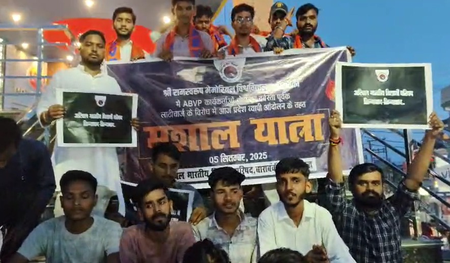 यूपी : रामस्वरूप यूनिवर्सिटी लाठीचार्ज के विरोध में बाराबंकी में एबीवीपी का प्रदर्शन, निकाली गई मशाल यात्रा