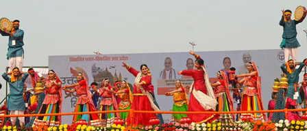 मुख्य समारोह में जहां विभिन्न विभागों की प्रदर्शनियों ने प्रदेश की विकास यात्रा को दर्शाया, वहीं संस्कृति विभाग द्वारा आयोजित कार्यक्रमों ने प्रदेश की समृद्ध सांस्कृतिक विरासत को मंच पर उतारा। वाराणसी के सौरव-गौरव मिश्रा ने कथक नृत्य की शास्त्रीय लय प्रस्तुत की तो पूरन महाराज के तबला वादन ने मंच को झंकृत कर दिया। बनारस की श्वेता दुबे और आजमगढ़ के शीतला मोहन मिश्रा के मधुर गायन ने श्रोताओं को मंत्रमुग्ध किया तो लखनऊ के विशाल गुप्ता ने शास्त्रीय नृत्य की छटा बिखेरी। उन्नाव के चंद्र भूषण ने नाटक का मंचन कर तालियां बटोरीं तो प्रसिद्ध इंडियन ओशन बैंड के रॉक व फ्यूजन म्यूजिक ने खासकर युवा श्रोताओं को झूमने पर मजबूर कर दिया।