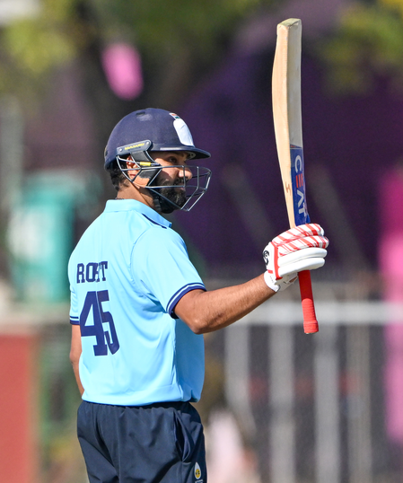 जयपुर, 24 दिसंबर (आईएएनएस)। ‘हिटमैन’ रोहित शर्मा ने बुधवार को विजय हजारे ट्रॉफी में मुंबई की ओर से खेलते हुए शतक लगाया। रोहित ने सिक्किम के विरुद्ध 94 गेंदों में 9 छक्कों और 18 चौकों के साथ 155 रन की पारी खेली। इस दौरान रोहित ने अपने लिस्ट ए करियर का सबसे तेज शतक लगाया।
