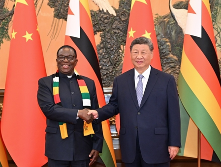 बीजिंग, 4 सितंबर (आईएएनएस)। चीनी राष्ट्रपति शी चिनफिंग ने पेइचिंग के जन वृहद भवन में चीनी जनता के जापानी अतिक्रमण विरोधी युद्ध और विश्व फासीवाद विरोधी युद्ध विजय की 80वीं वर्षगांठ के स्मरणोत्सव में भाग लेने के लिए चीन आए जिम्बाब्वे के राष्ट्रपति एमर्सन दाम्बुद्जो मनांगाग्वा से मुलाकात की।